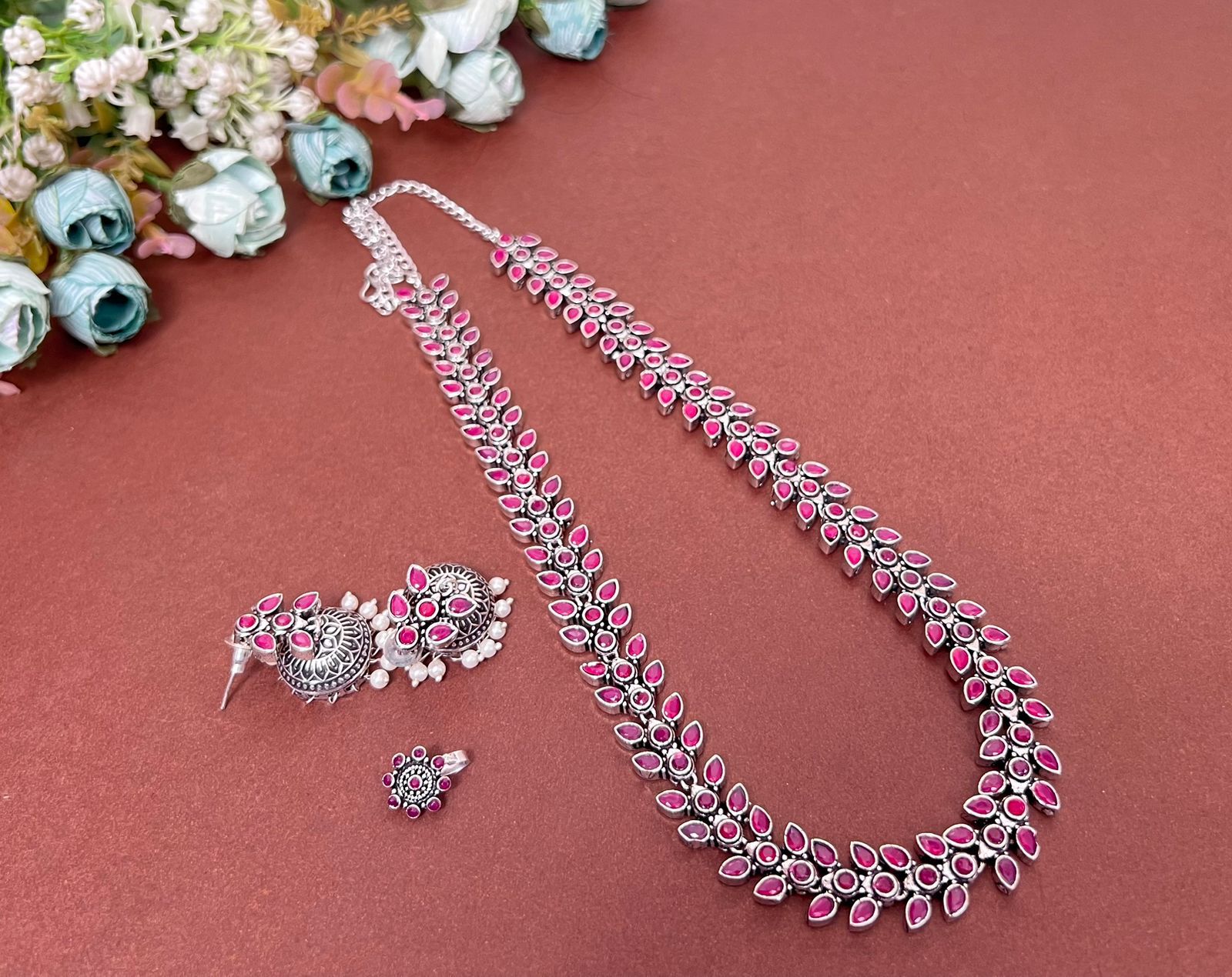 Be the first to review “Oxidised Plated Long Necklace Set With Nose Pin”